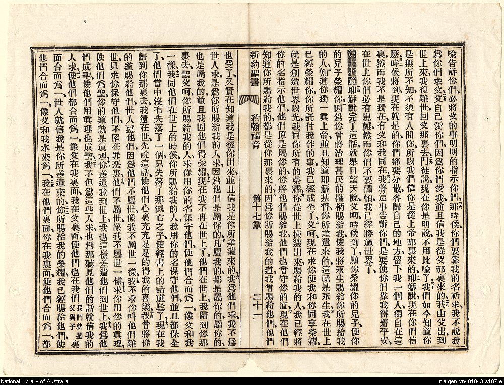1887年新約聖書:官話四卷 約翰福音 16 章 21 節到 17 章 23 節