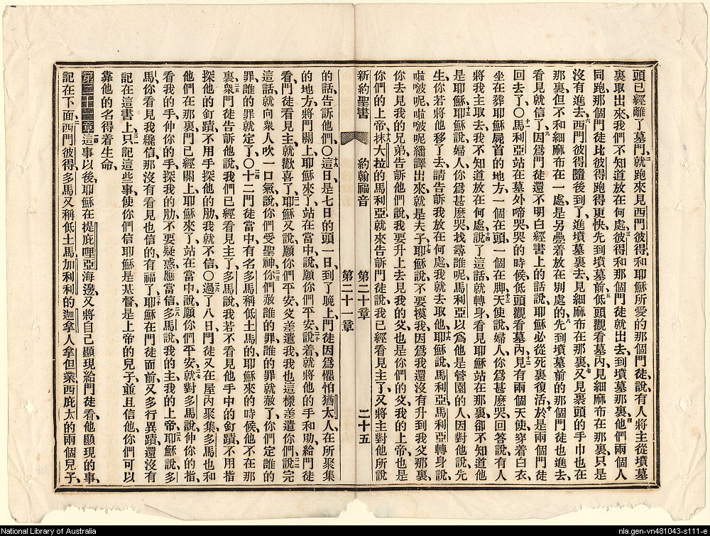 1887年新約聖書:官話四卷 約翰福音 20 章 2 節到 21 章 2 節