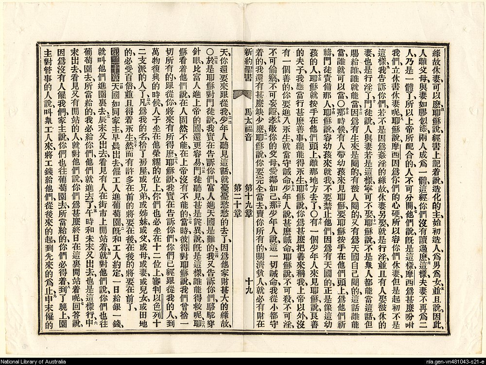 1887年新約聖書:官話四卷 馬太福音 19 章 4 節到 20 章 9 節
