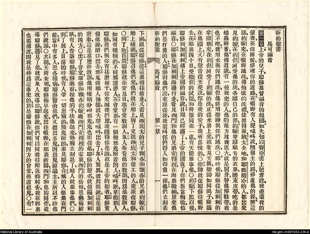 1887年新約聖書:官話四卷 馬可福音 1 章 1 節到 1 章 40 節
