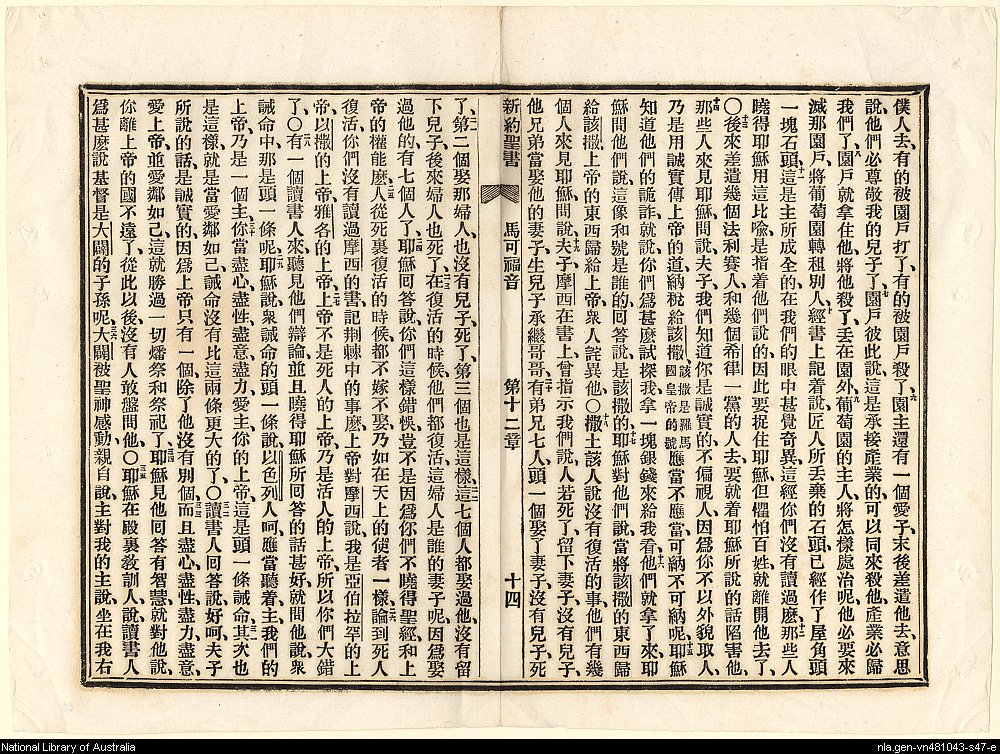 1887年新約聖書:官話四卷 馬可福音 12 章 6 節到 12 章 36 節