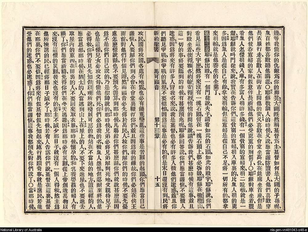 1887年新約聖書:官話四卷 馬可福音 12 章 37 節到 13 章 24 節