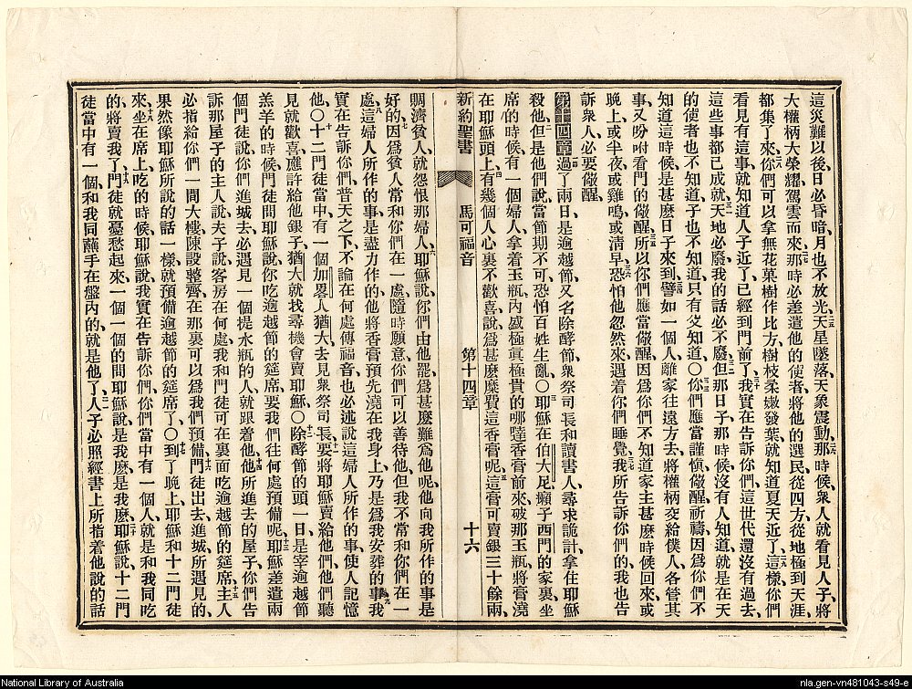 1887年新約聖書:官話四卷 馬可福音 13 章 25 節到 14 章 21 節