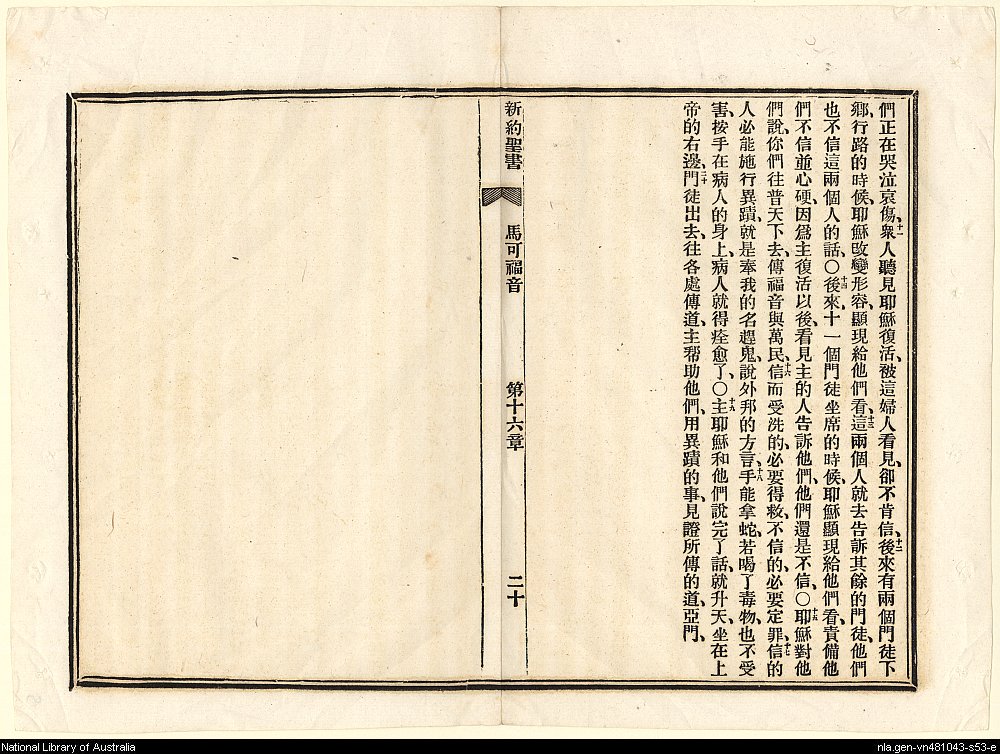 1887年新約聖書:官話四卷 馬可福音 16 章 11 節到 16 章 20 節