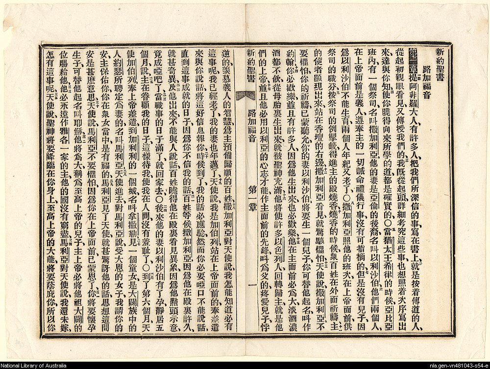 1887年新約聖書:官話四卷 路加福音 1 章 1 節到 1 章 35 節