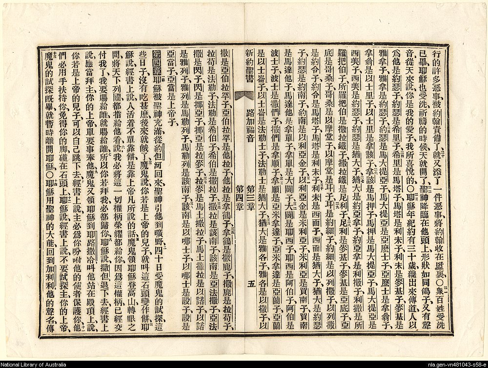 1887年新約聖書:官話四卷 路加福音 3 章 20 節到 4 章 14 節