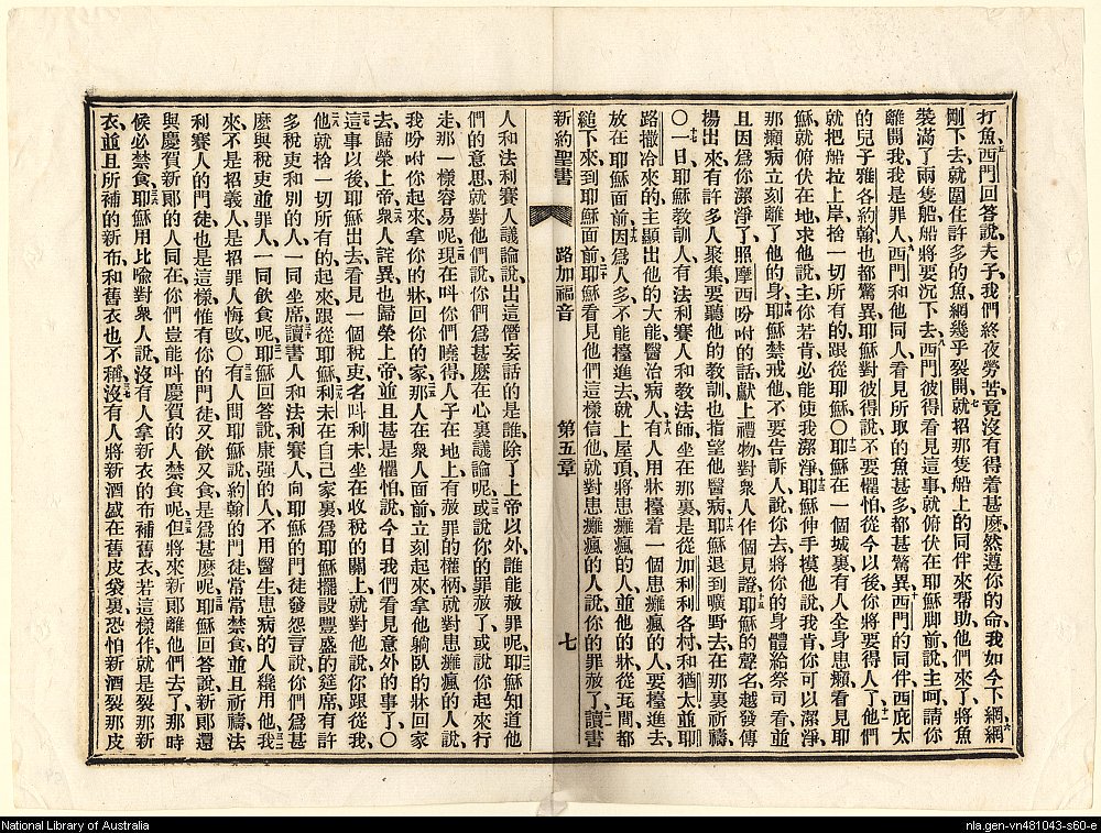 1887年新約聖書:官話四卷 路加福音 5 章 5 節到 5 章 37 節