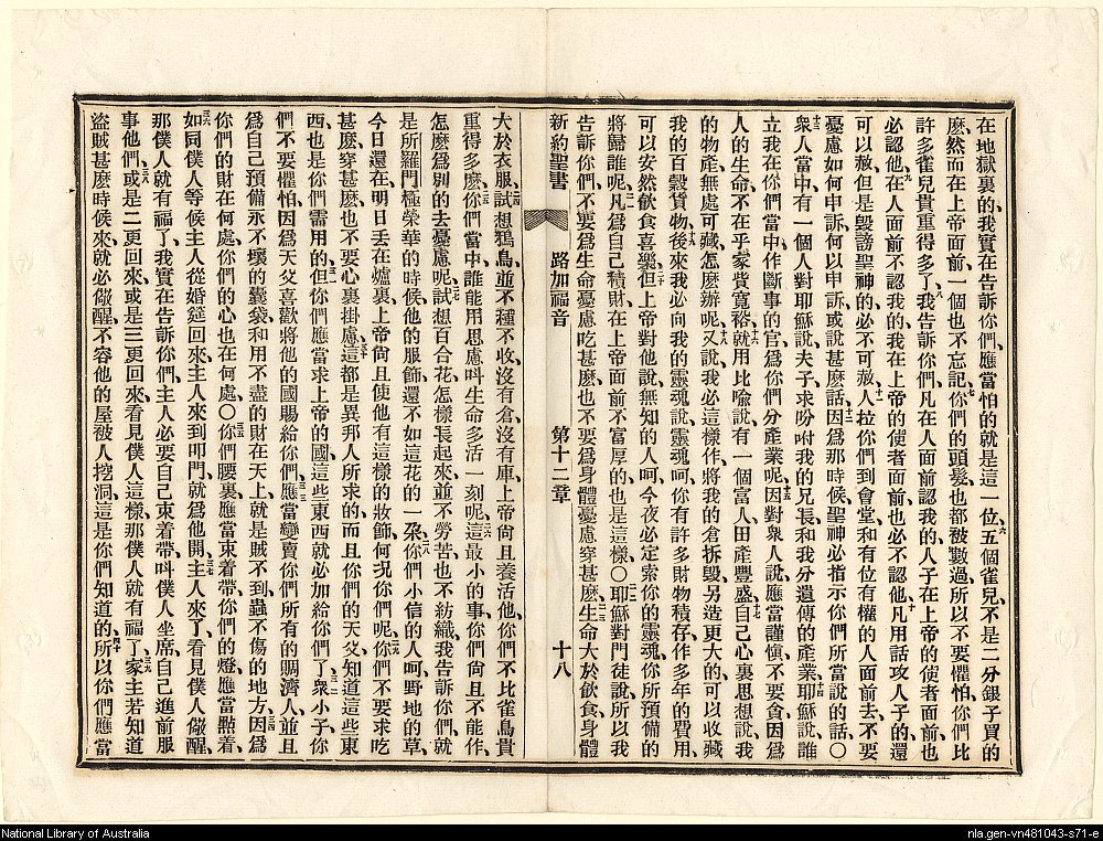 1887年新約聖書:官話四卷 路加福音 12 章 6 節到 12 章 40 節