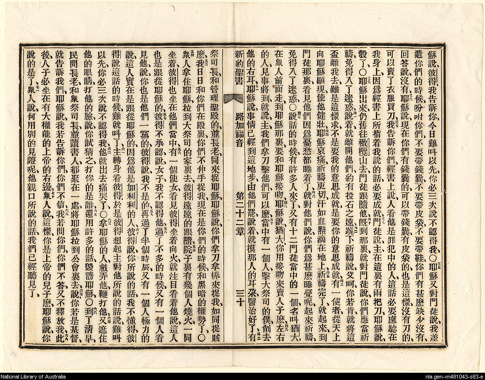 1887年新約聖書:官話四卷 路加福音 22 章 35 節到 22 章 71 節