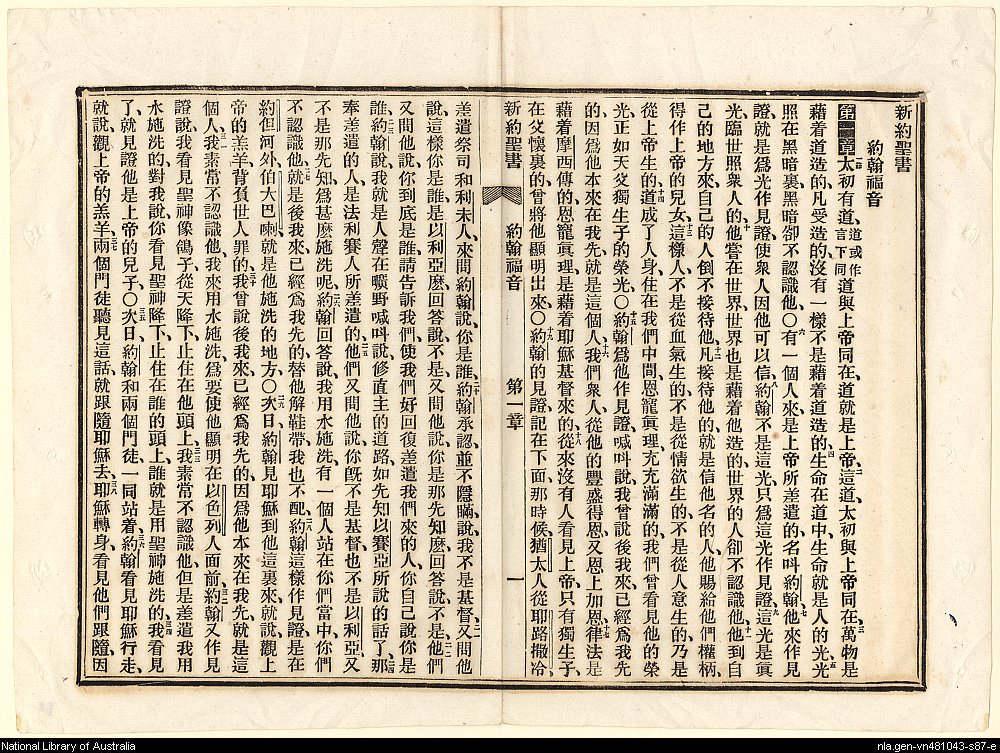1887年新約聖書:官話四卷 約翰福音 1 章 1 節到 1 章 38 節