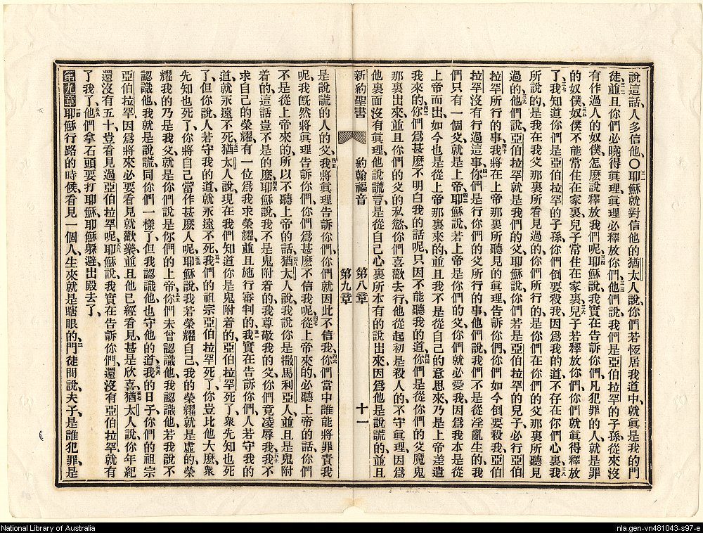 1887年新約聖書:官話四卷 約翰福音 8 章 31 節到 9 章 2 節