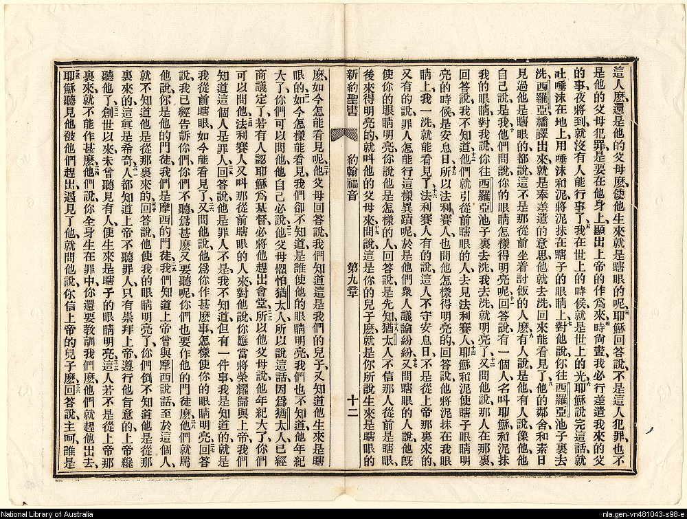 1887年新約聖書:官話四卷 約翰福音 9 章 3 節到 9 章 36 節