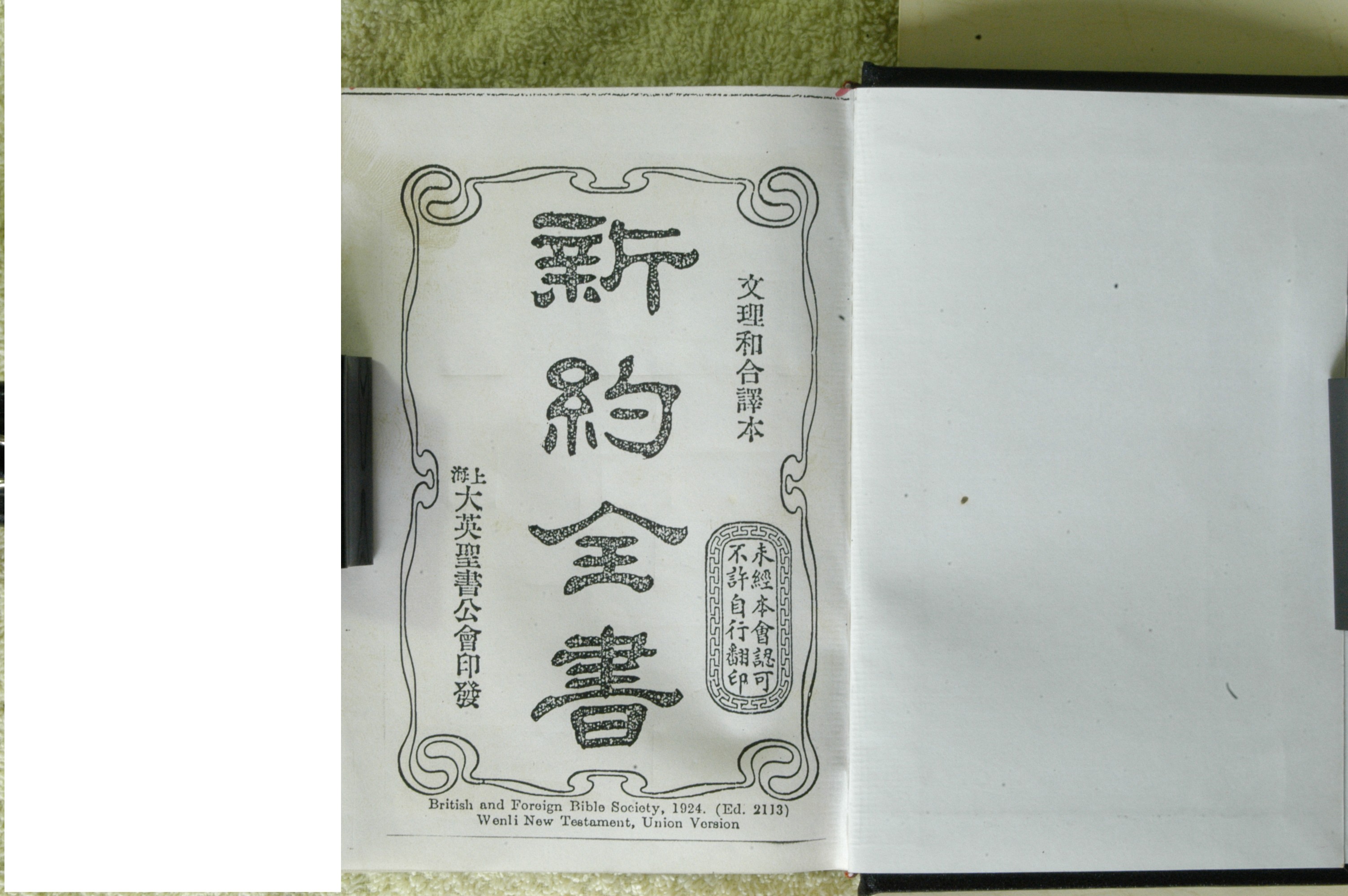 1924年新約全書(文理和合本) 封面 2 章 到 2 章