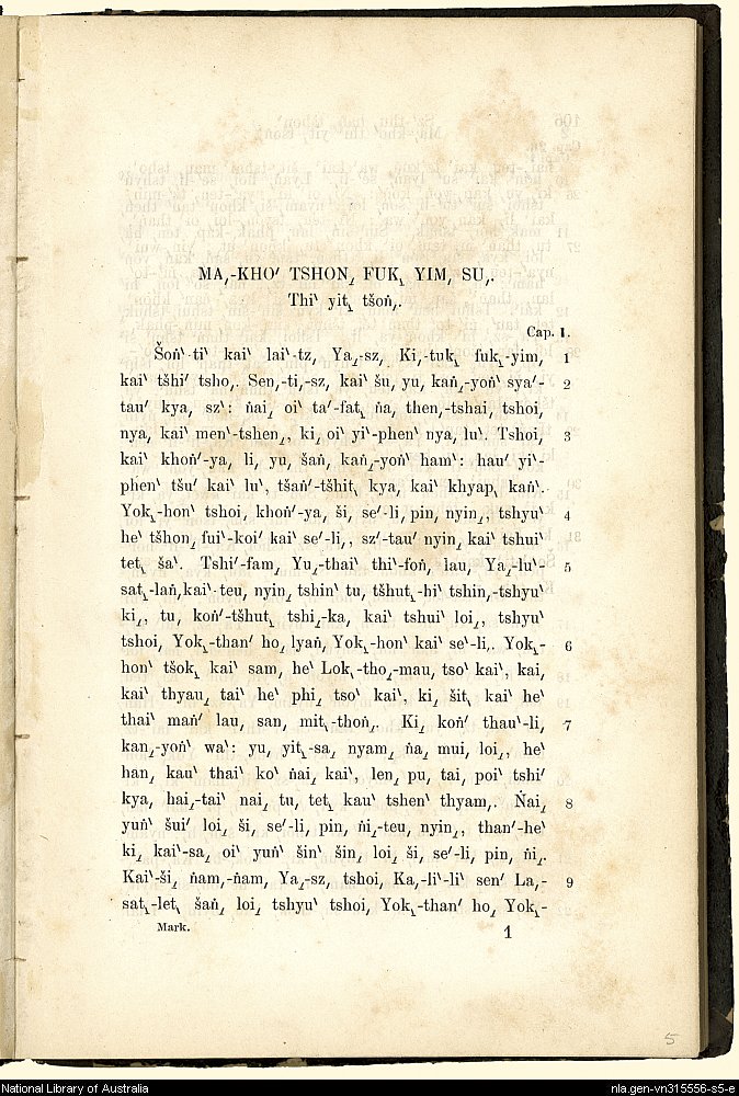 1874年新約馬可福音、使徒行傳 馬可福音 1 章 1 節到 1 章 9 節