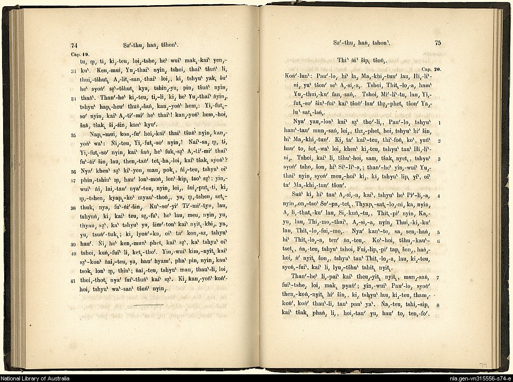 1874年新約馬可福音、使徒行傳 使徒行傳 19 章 33 節到 20 章 8 節