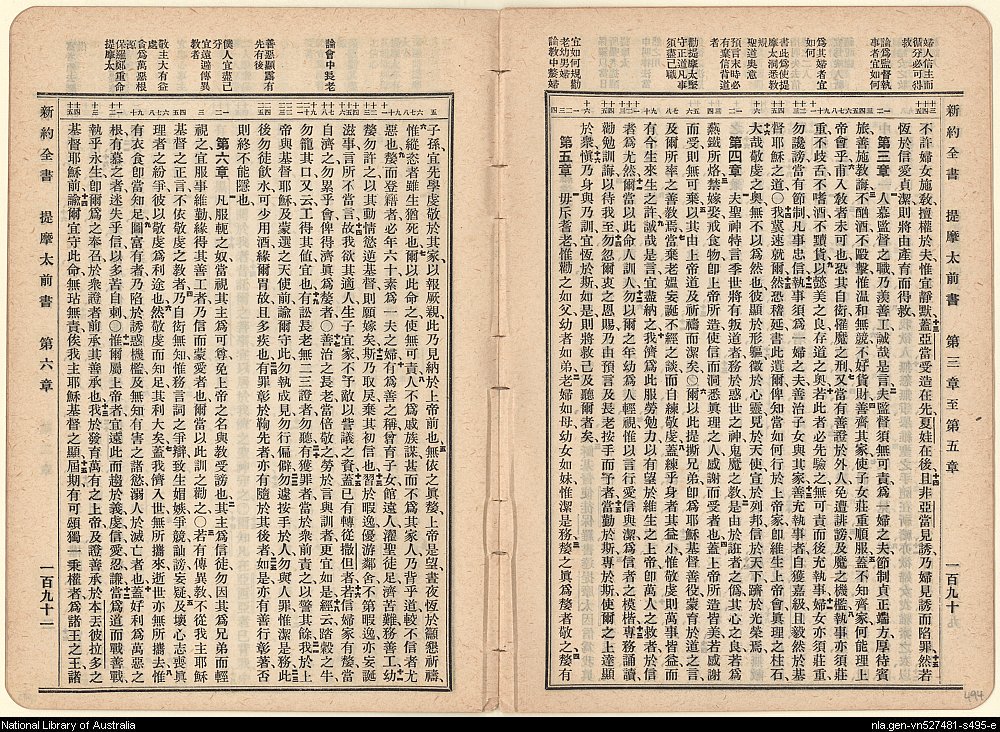1919年新舊約全書(文理和合本) 提摩太前書 2 章 13 節到 6 章 15 節