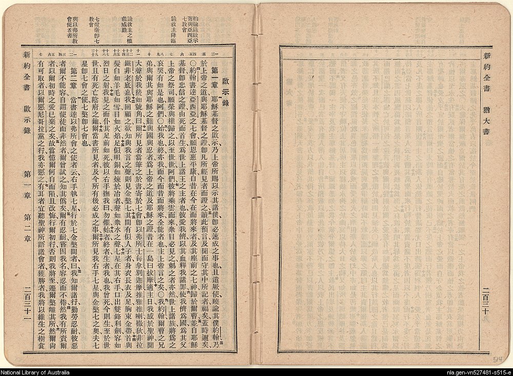 1919年新舊約全書(文理和合本) 啟示錄 1 章 1 節到 2 章 7 節
