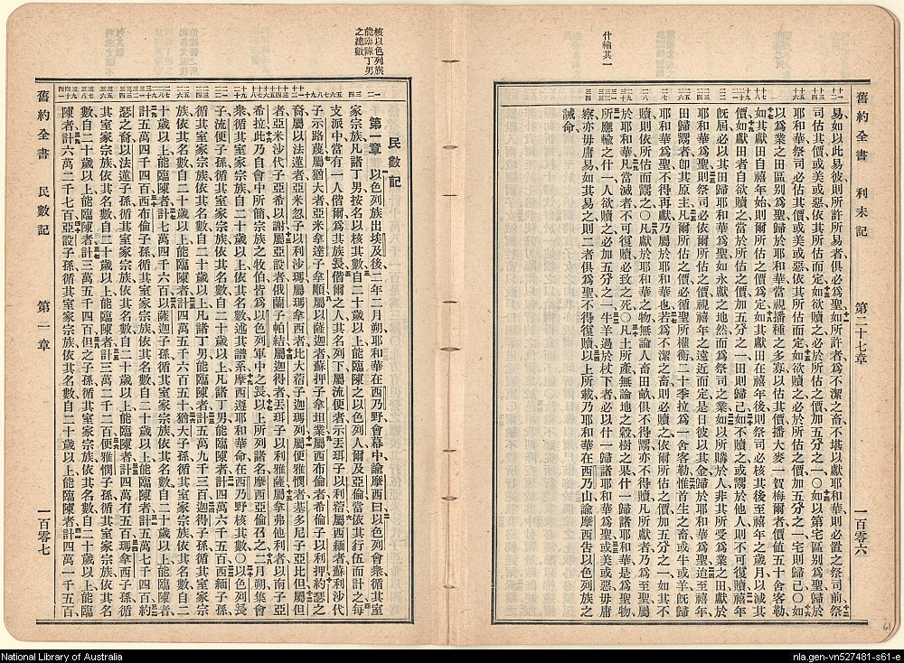 1919年新舊約全書(文理和合本) 民數記 1 章 1 節到 1 章 41 節