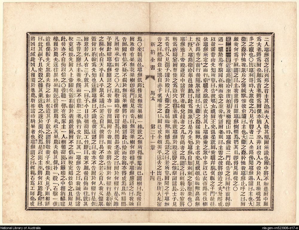 1897年新約全書 馬太福音 20 章 25 節到 21 章 42 節