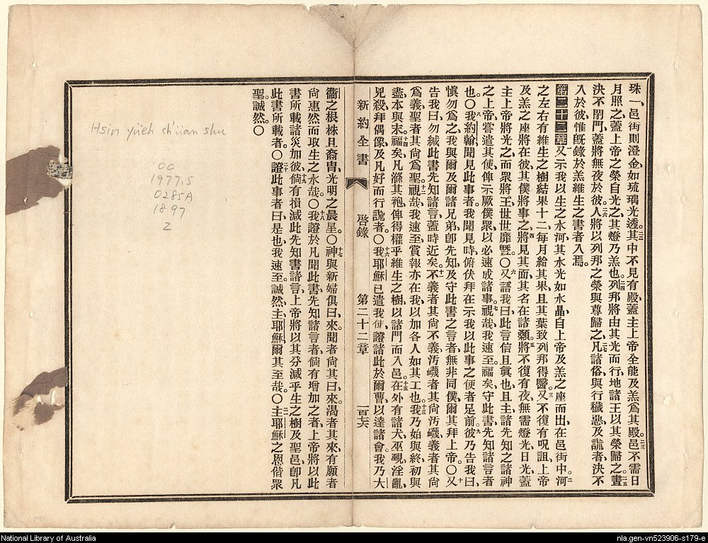 1897年新約全書 啟示錄 21 章 22 節到 22 章 21 節