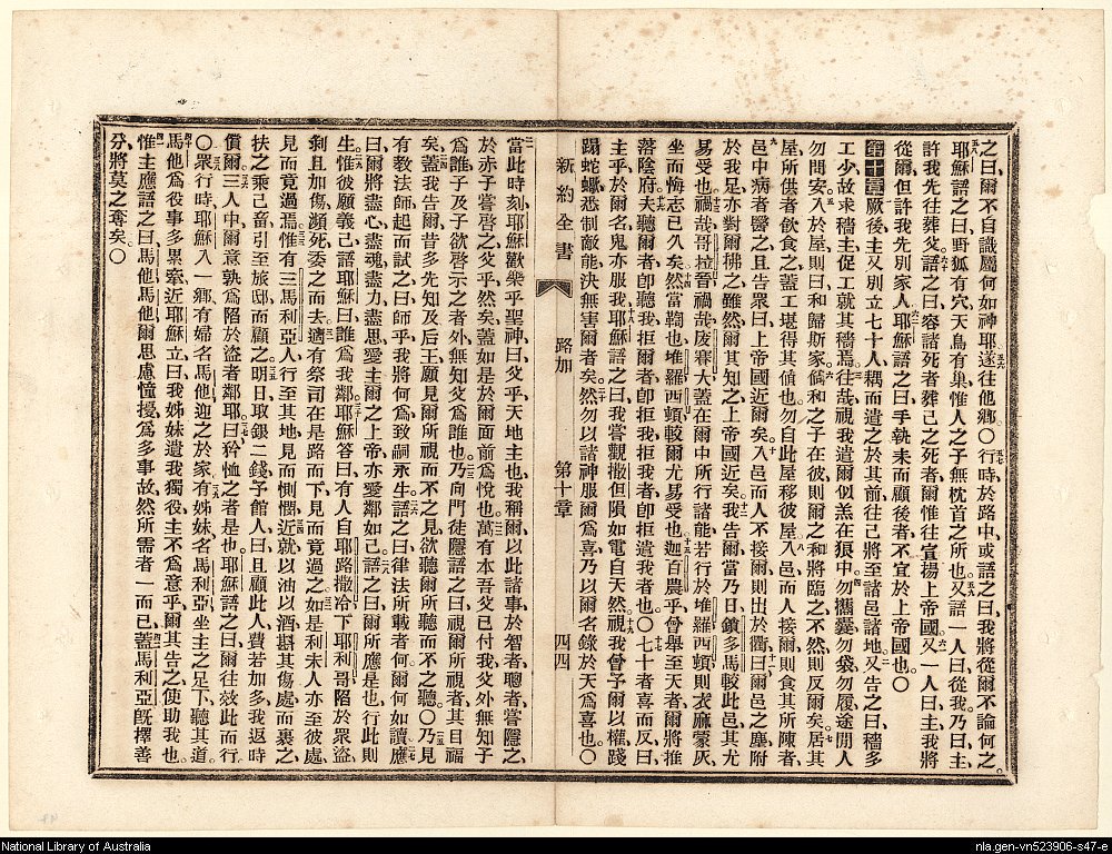 1897年新約全書 路加福音 9 章 56 節到 10 章 42 節