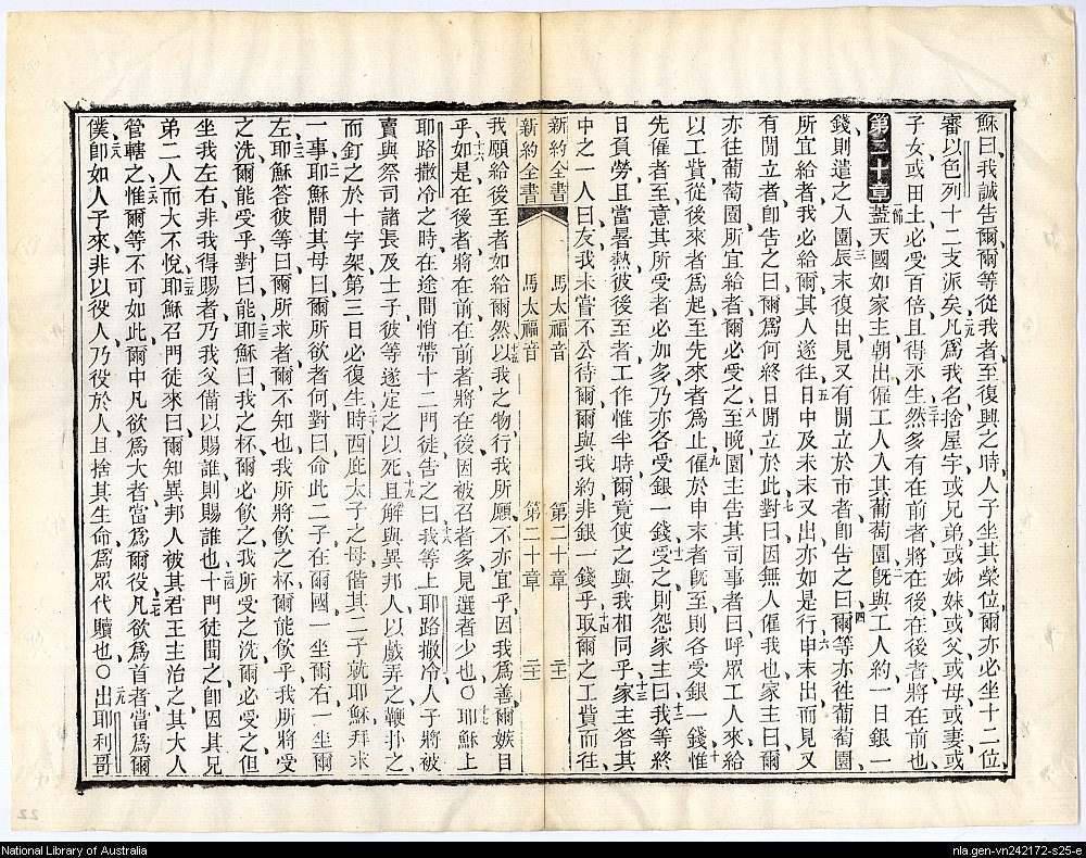 1884年新約四福音 馬太福音 19 章 29 節到 20 章 29 節