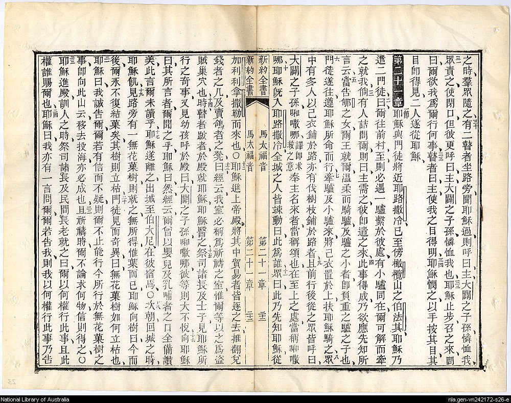 1884年新約四福音 馬太福音 20 章 30 節到 21 章 24 節