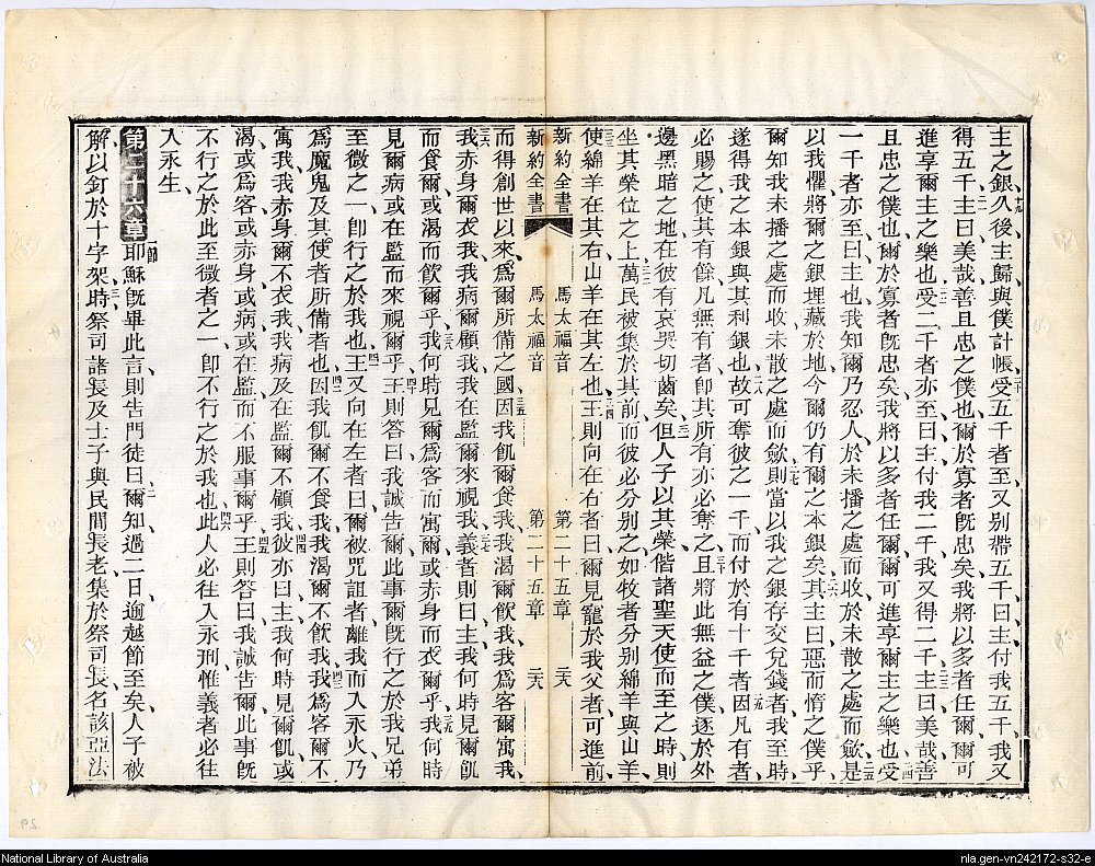 1884年新約四福音 馬太福音 25 章 19 節到 26 章 3 節
