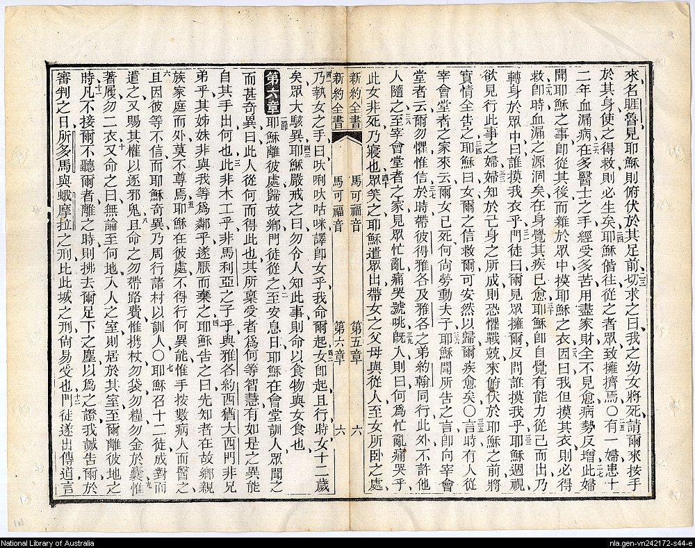 1884年新約四福音 馬可福音 5 章 23 節到 6 章 12 節