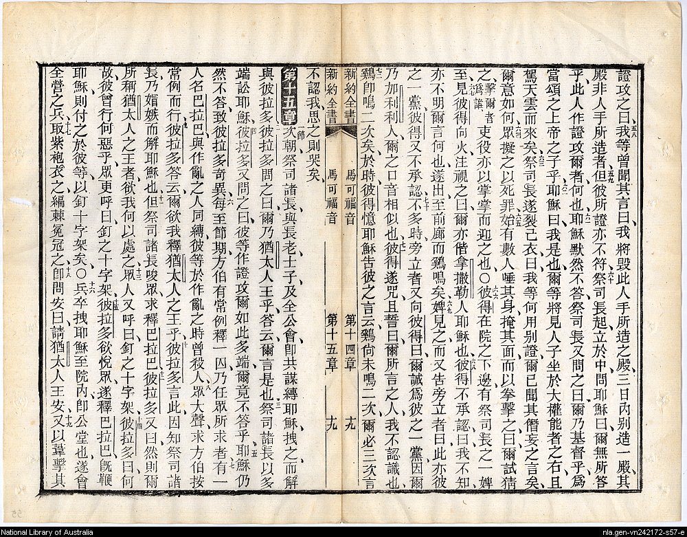 1884年新約四福音 馬可福音 14 章 58 節到 15 章 19 節