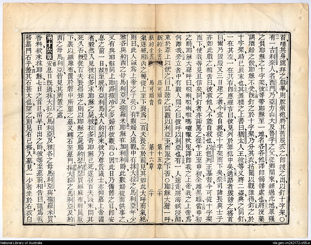 1884年新約四福音 馬可福音 15 章 20 節到 16 章 5 節