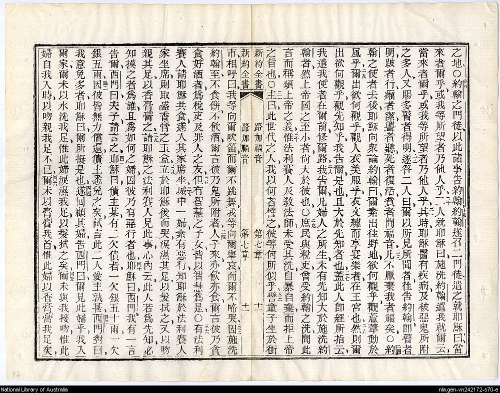 1884年新約四福音 路加福音 7 章 18 節到 7 章 46 節