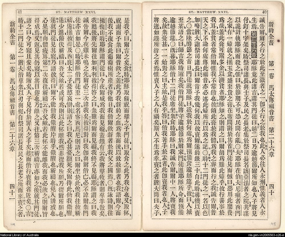 1864年新約全書 馬太福音 25 章 46 節到 26 章 48 節