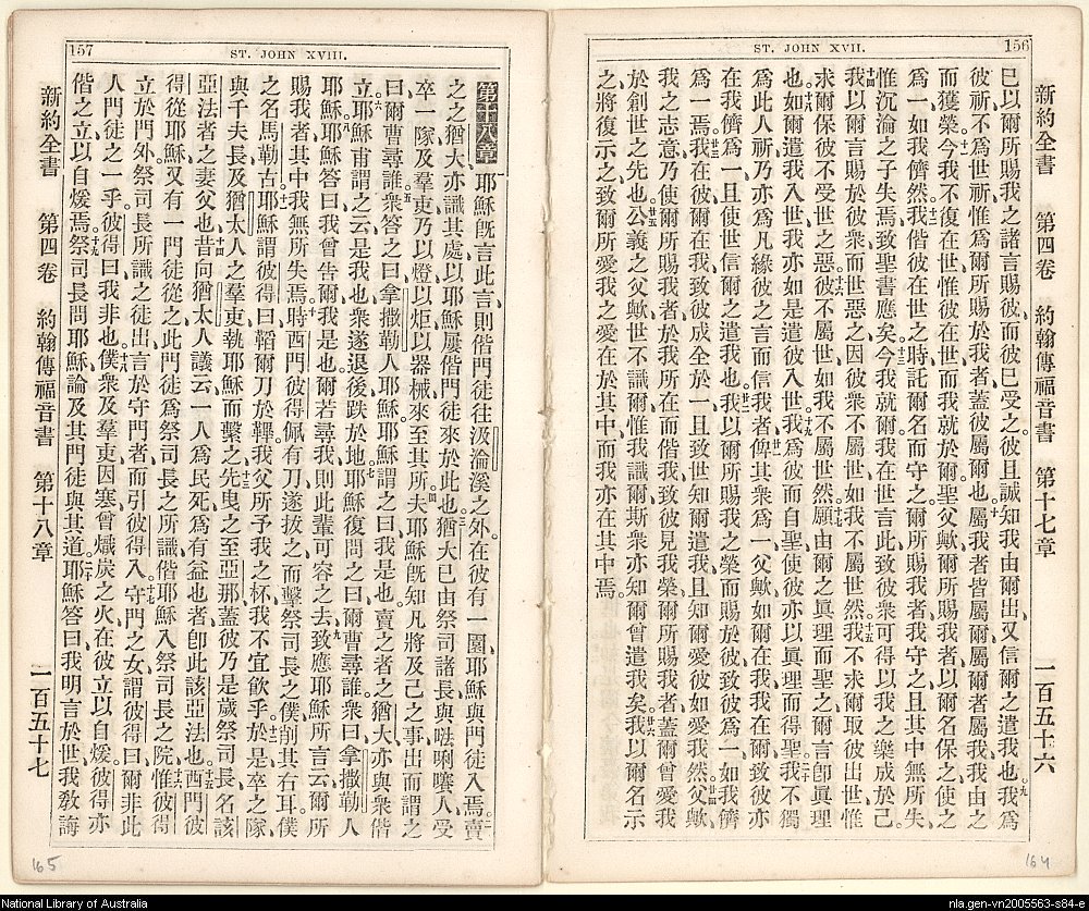 1864年新約全書 約翰福音 17 章 9 節到 18 章 20 節