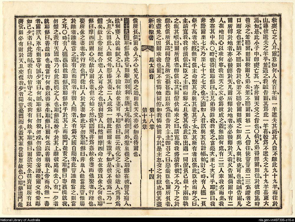 1898年新約全書 馬太福音 18 章 12 節到 19 章 23 節