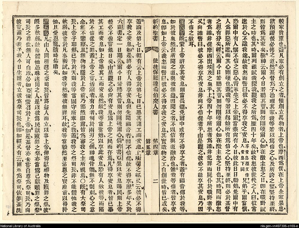 1898年新約全書 希伯來書 3 章 4 節到 5 章 6 節