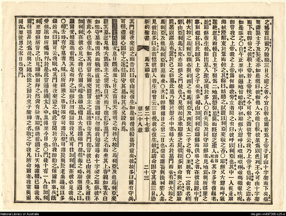 1898年新約全書 馬太福音 27 章 40 節到 28 章 20 節