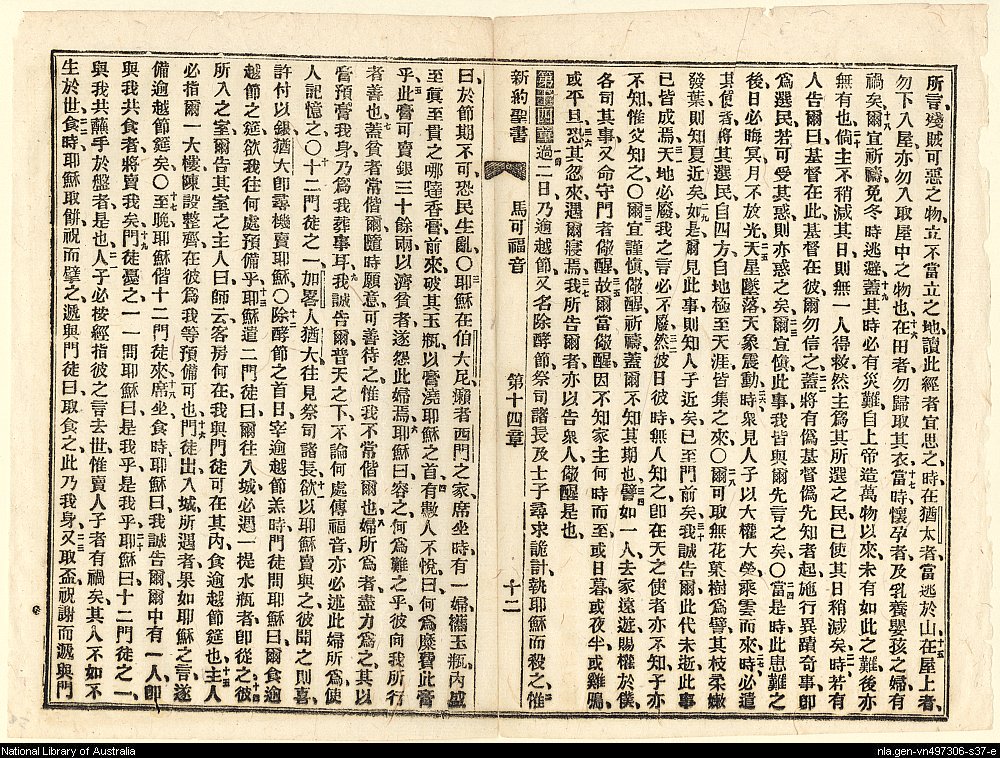 1898年新約全書 馬可福音 13 章 15 節到 14 章 23 節