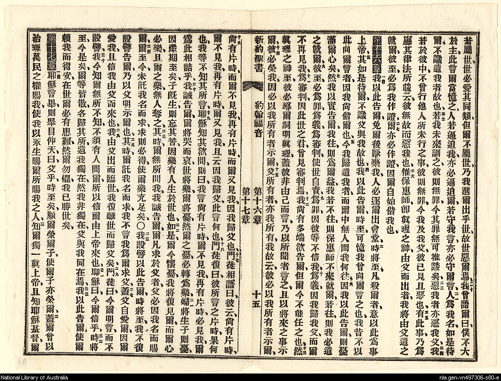 1898年新約全書 約翰福音 15 章 20 節到 17 章 3 節