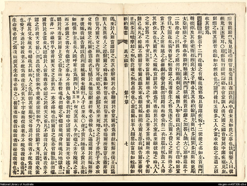 1898年新約全書 馬太福音 9 章 33 節到 10 章 41 節