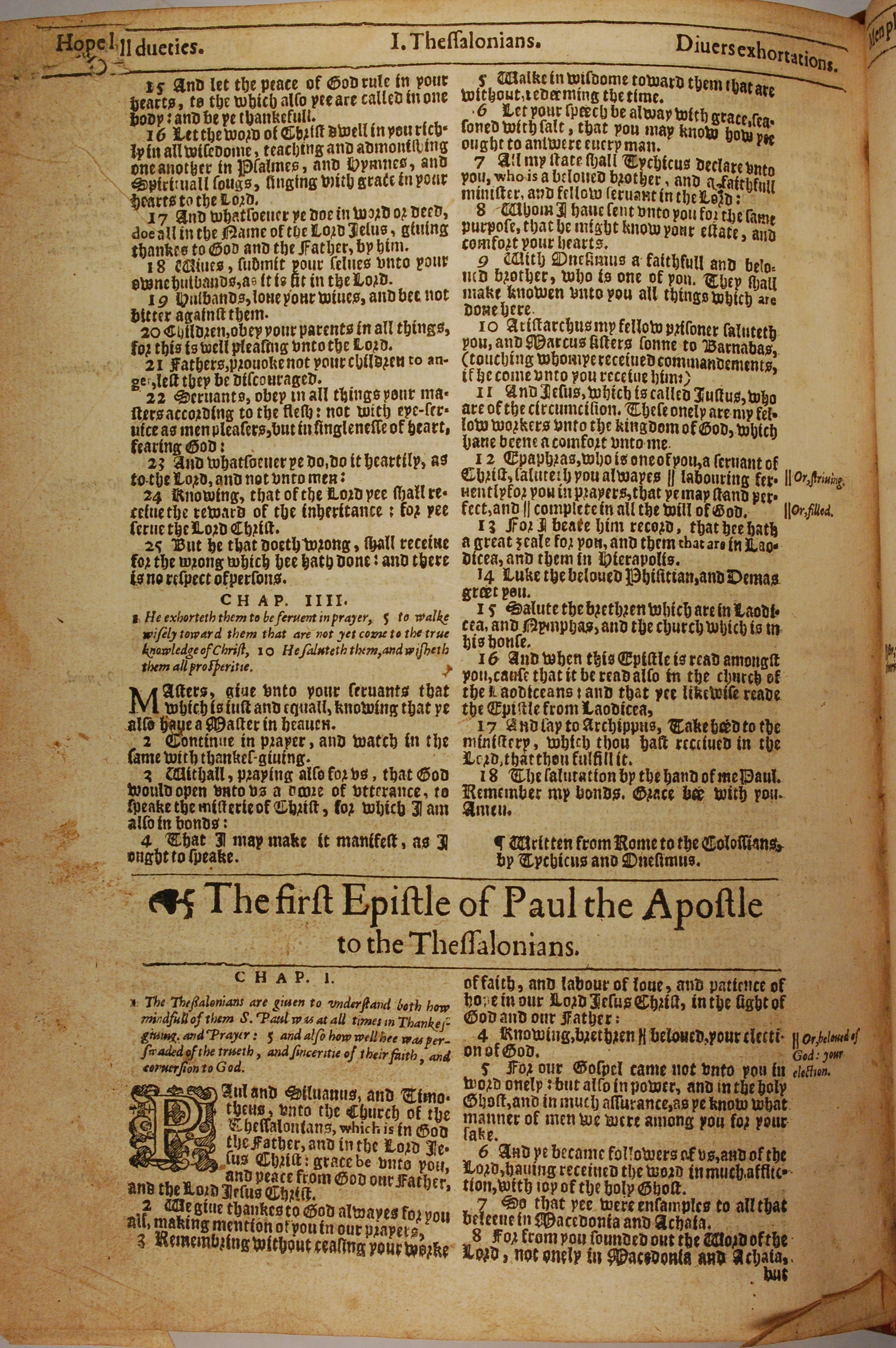 1613年The Genealogies recorded in the sacred scriptures 歌羅西書 3 章 15 節到 4 章 18 節