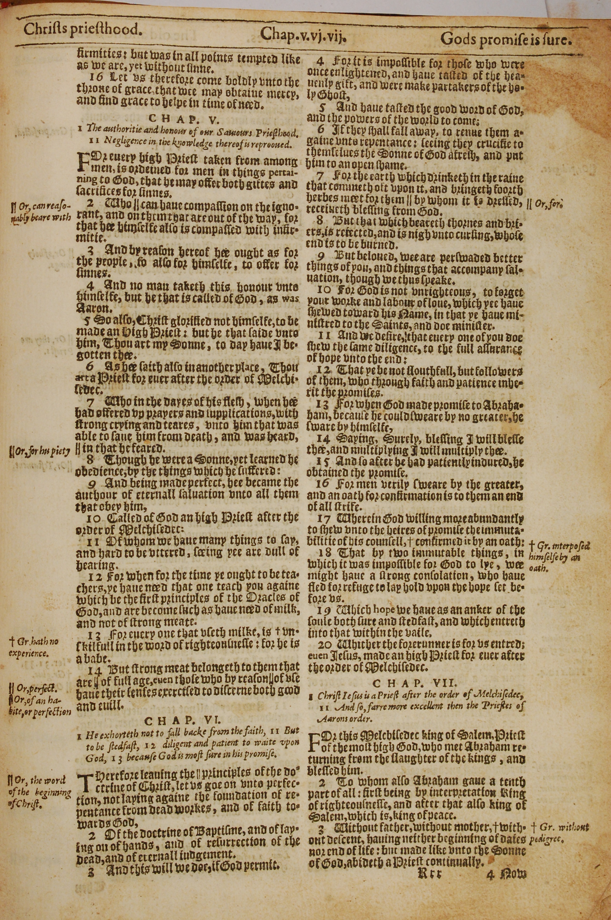 1613年The Genealogies recorded in the sacred scriptures 希伯來書 4 章 16 節到 7 章 3 節