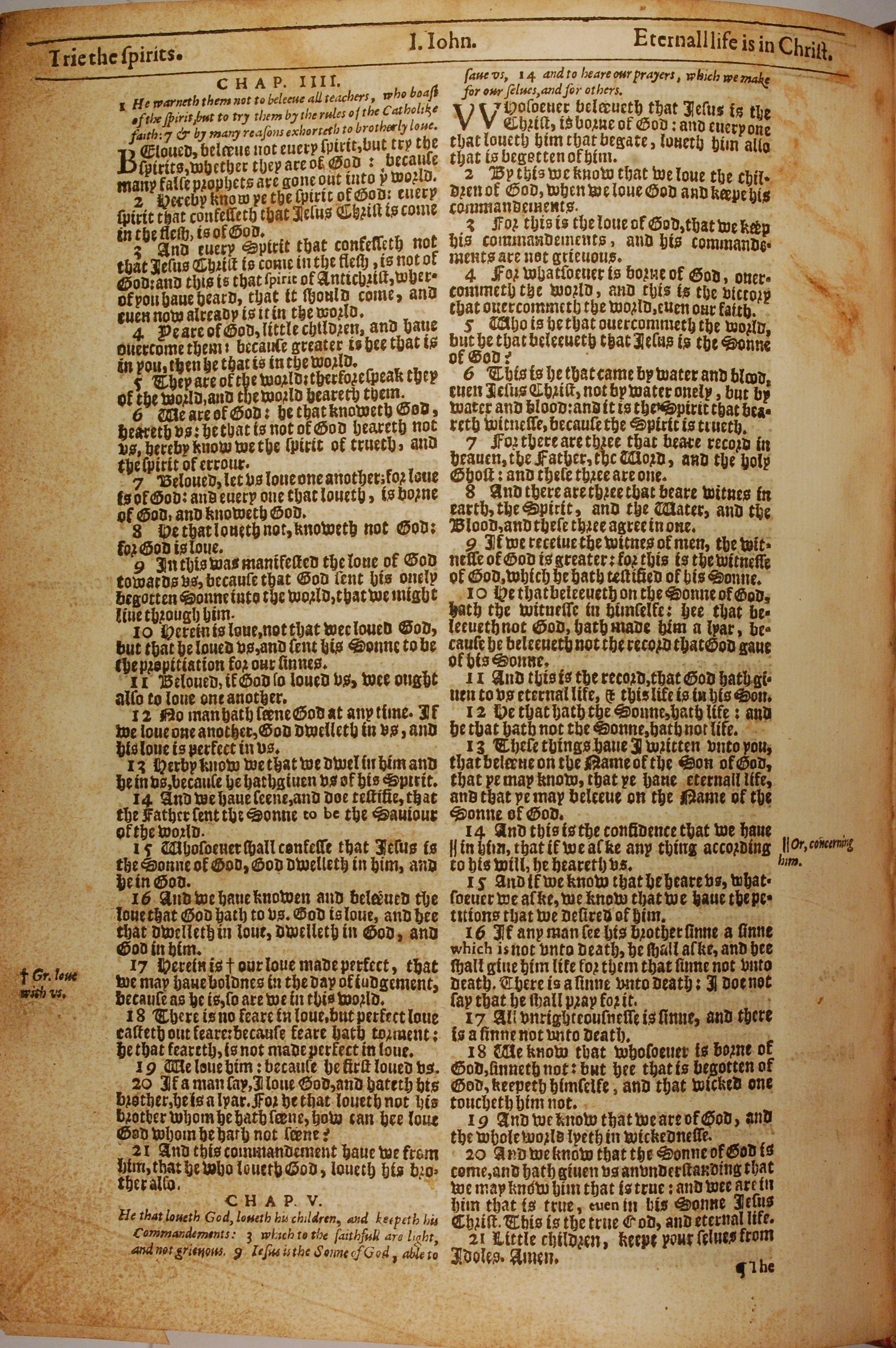 1613年The Genealogies recorded in the sacred scriptures 約翰一書 4 章 1 節到 5 章 21 節