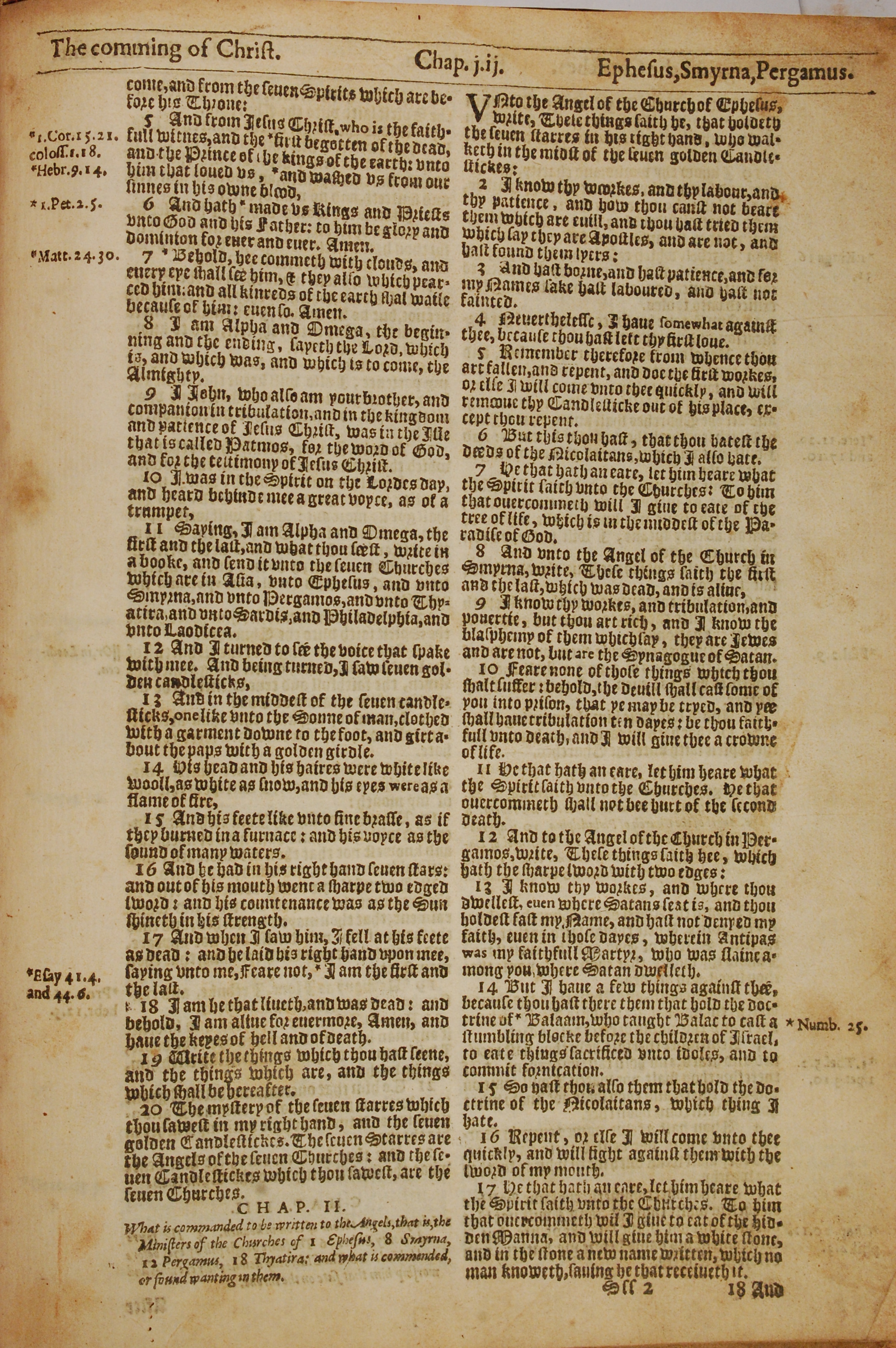 1613年The Genealogies recorded in the sacred scriptures 啟示錄 1 章 5 節到 2 章 17 節
