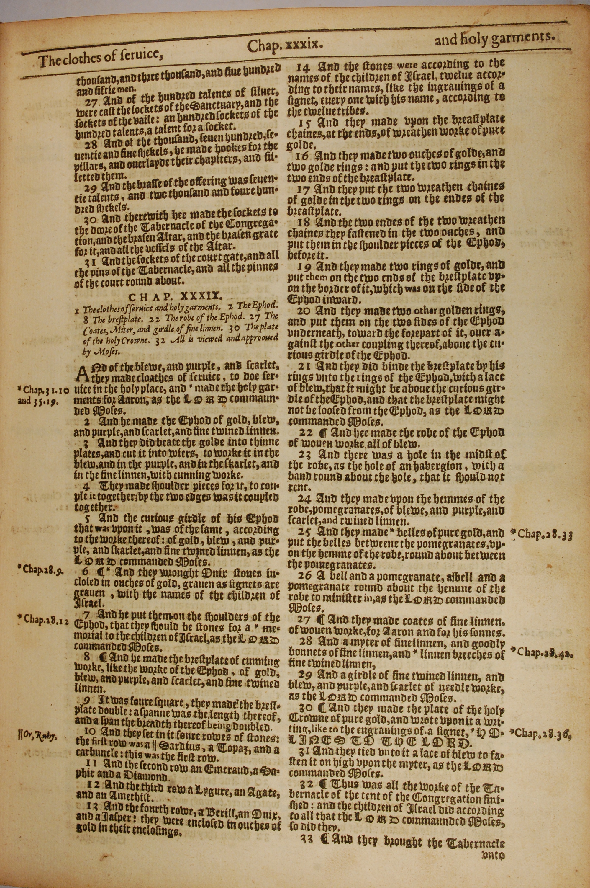 1613年The Genealogies recorded in the sacred scriptures 出埃及記 38 章 27 節到 39 章 33 節