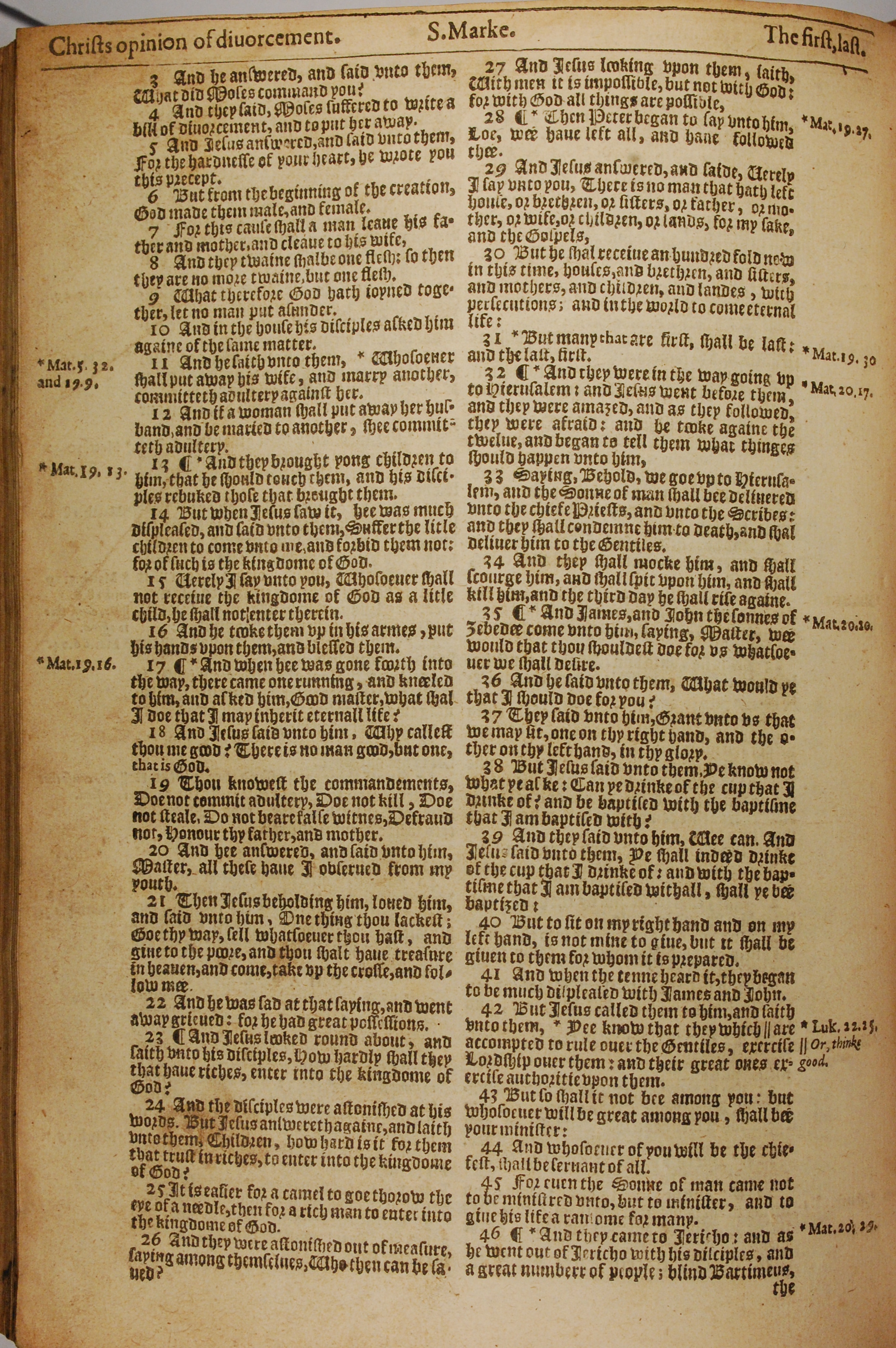1613年The Genealogies recorded in the sacred scriptures 馬可福音 10 章 3 節到 10 章 46 節
