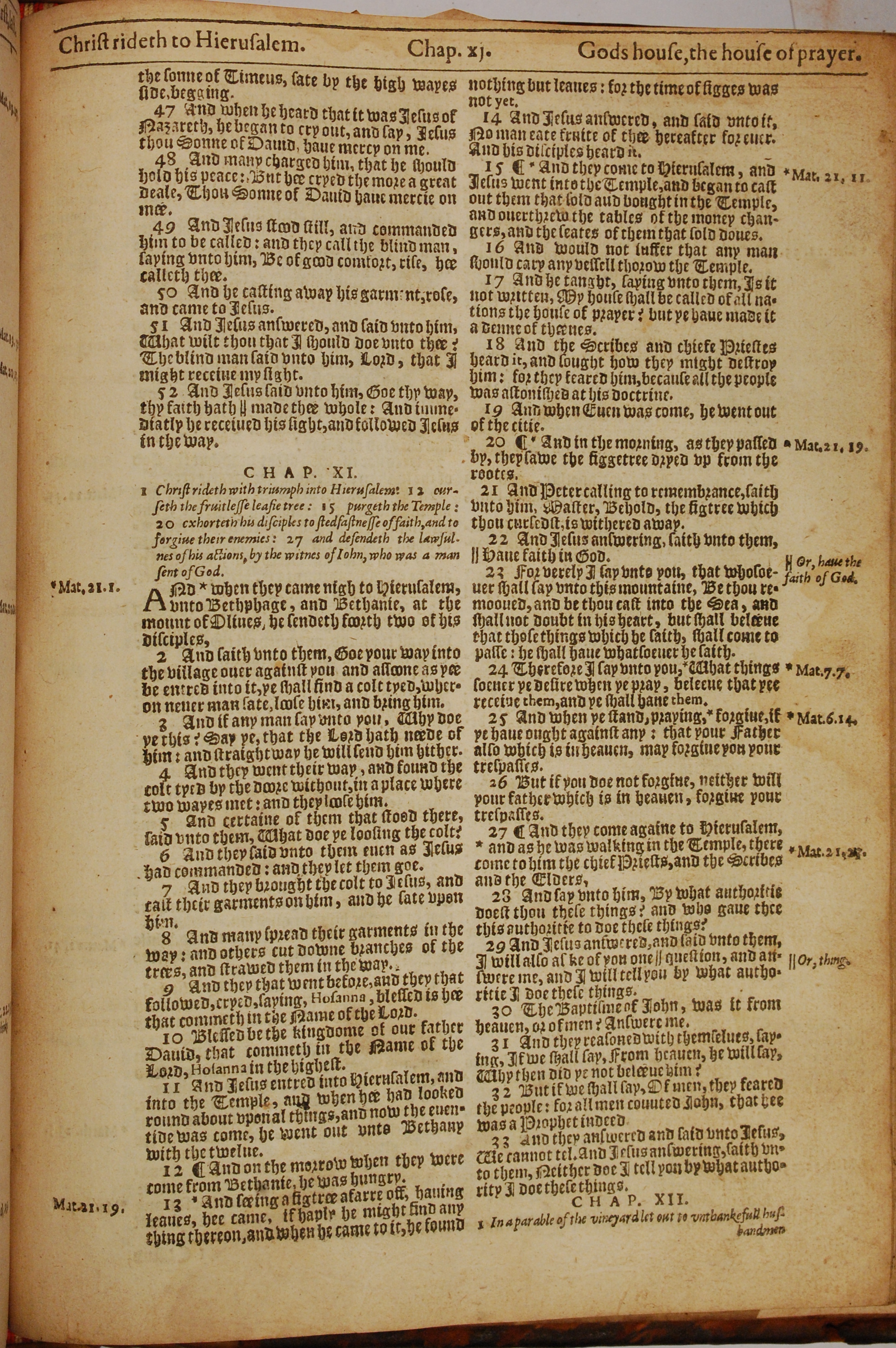 1613年The Genealogies recorded in the sacred scriptures 馬可福音 10 章 47 節到 11 章 33 節