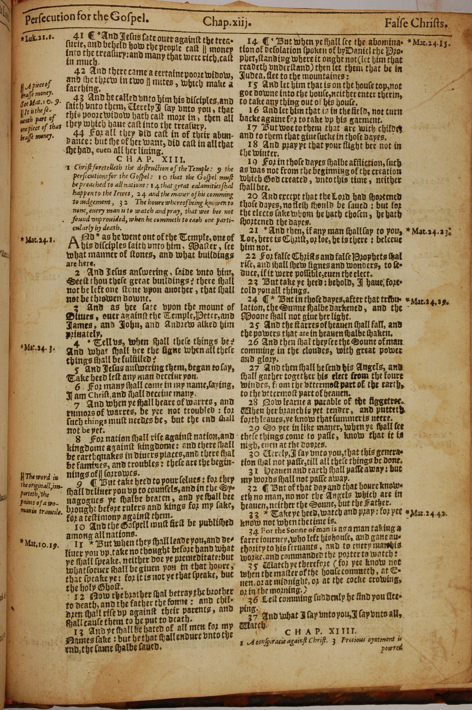 1613年The Genealogies recorded in the sacred scriptures 馬可福音 12 章 41 節到 13 章 37 節