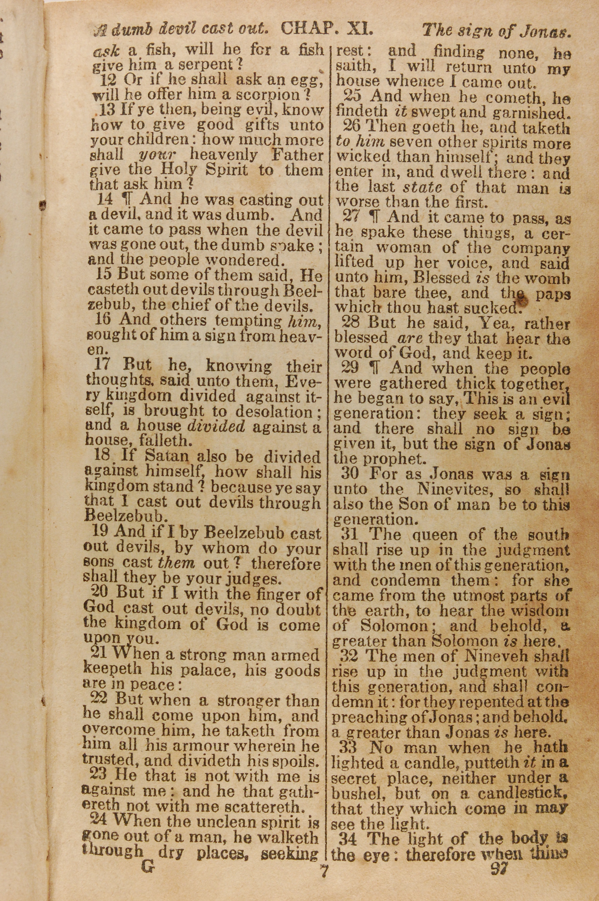 1843年The New Testament 路加福音 11 章 12 節到 11 章 34 節