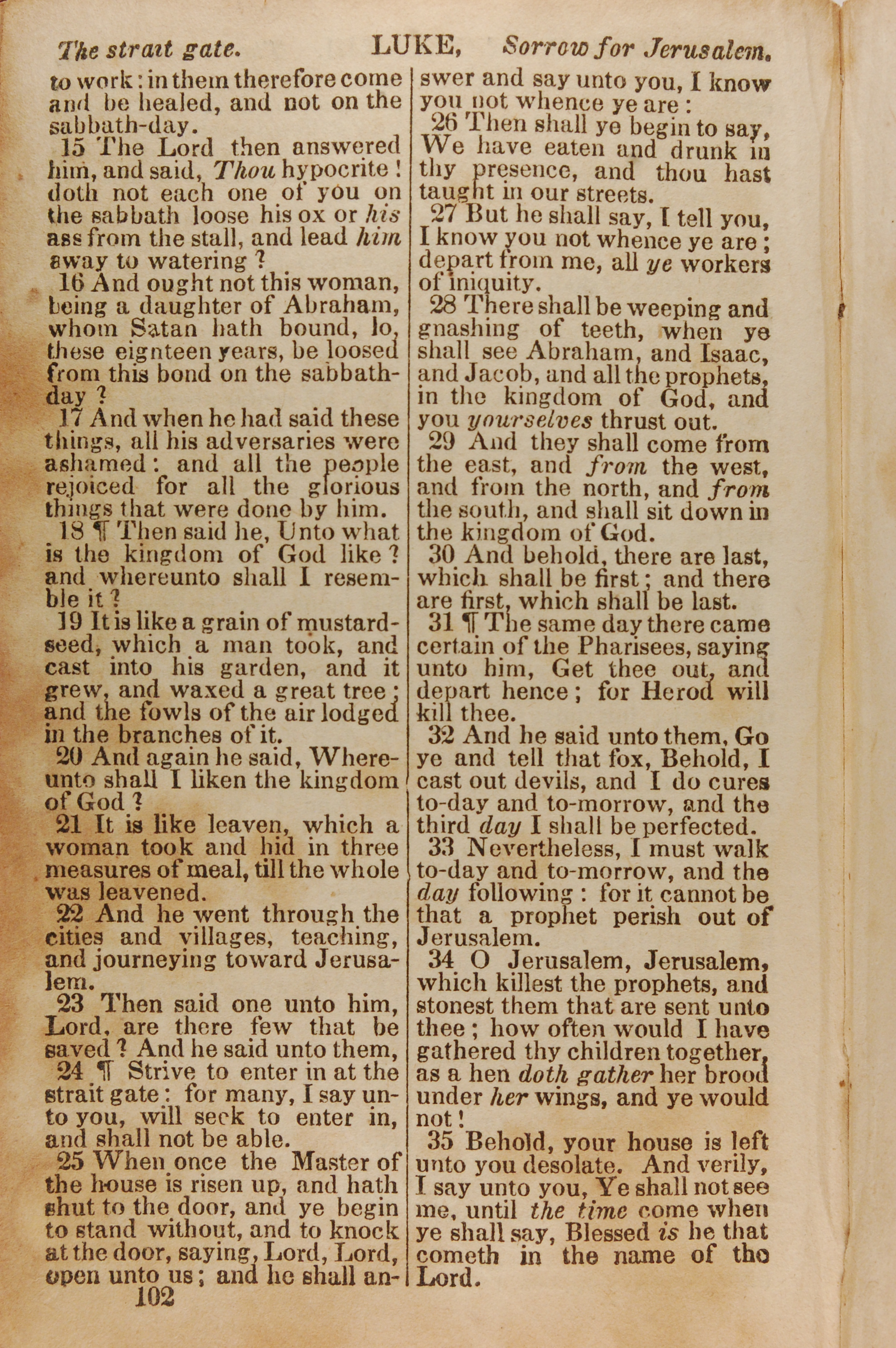 1843年The New Testament 路加福音 13 章 15 節到 13 章 35 節